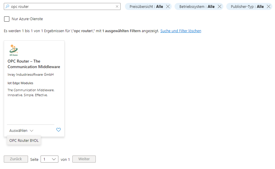 Enter "opc router" in the search field and click on "Select" and then "OPC Router BYOL."
