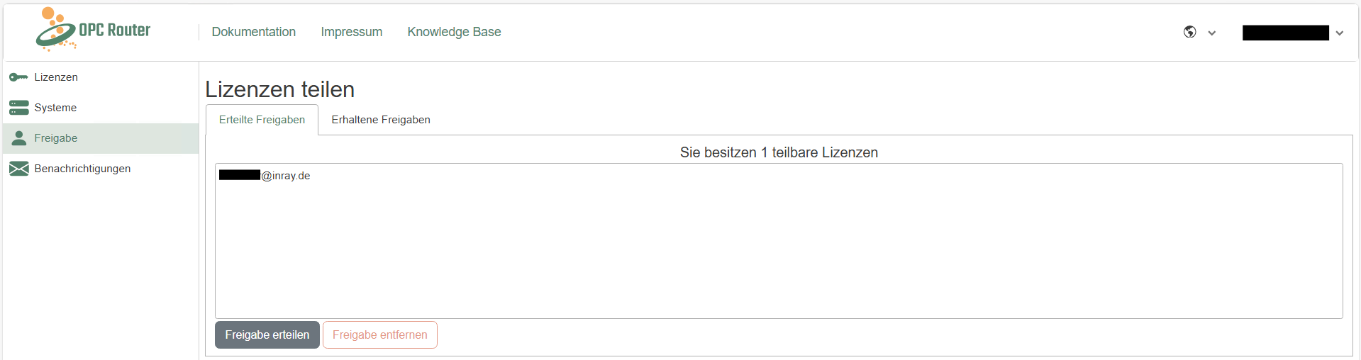 The portal allows you to share licenses with colleagues to facilitate collaboration. In the "Sharing" section, you can share your licenses with colleagues and receive shares from colleagues. To do this, simply enter the email address of the account with which you want to share the license. Shared licenses can be used and deployed in the same way as personal licenses. Of course, shares can be removed at any time.