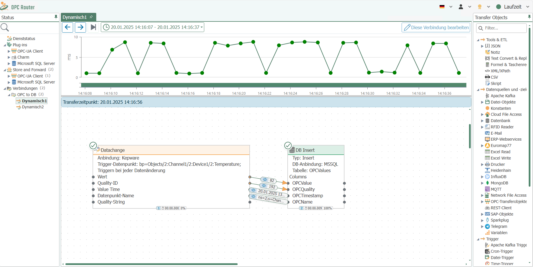 The columns [ID] and [OpcR_Changed] are automatically filled in by the OPC Router. The value [InstanceName] must be unique and is displayed as the display name at runtime. In addition, you can generate a folder structure at runtime in [InstanceName] using backslashes. The value [OpcR_Changed] shows you when the connection was last changed.