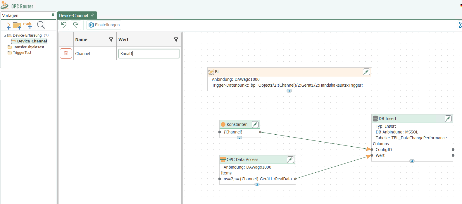 The instances have been created and the data points have been named correctly. You can use the "Edit" button to change the values of the template variables later. You can also overwrite some connection settings.