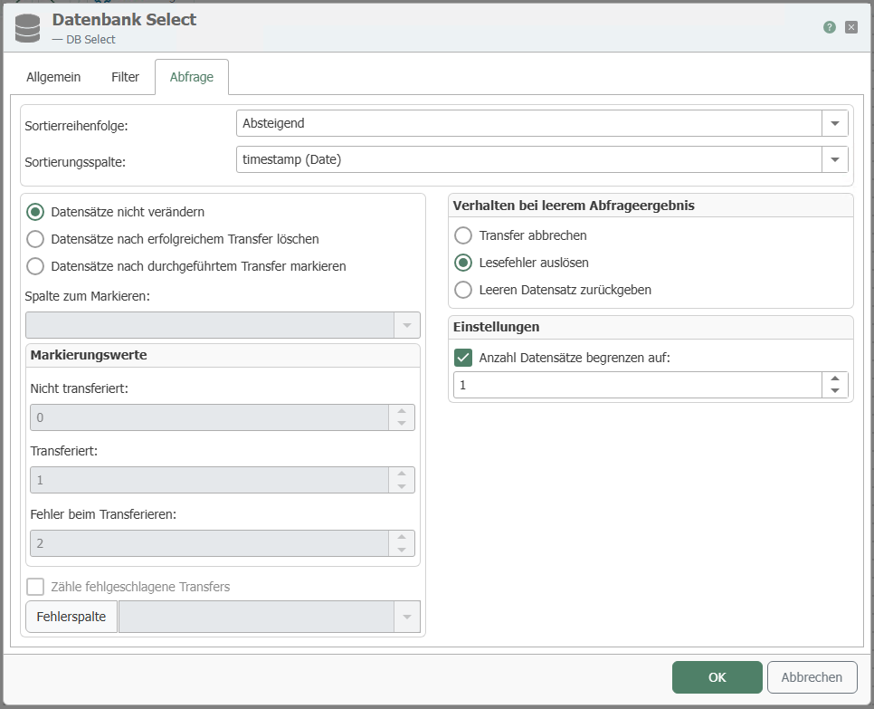 | Limit number of records to | 1 (only the first record = the newest should be transferred) |
