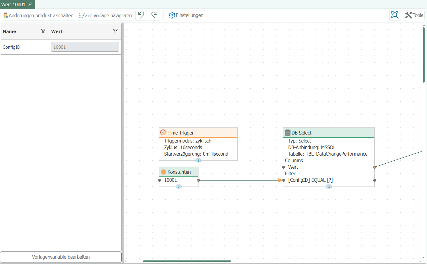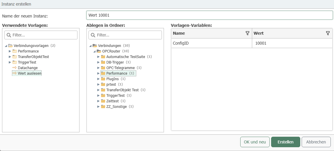 This allows you to quickly create connections for all existing measurement series (=ConfigIDs): one instance per ConfigID. Figure above: Template; Figure below: Instance.