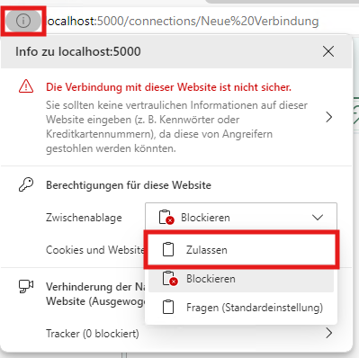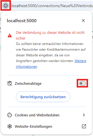 Clicking on the "Show website information" button opens a menu where you can grant access to the clipboard.