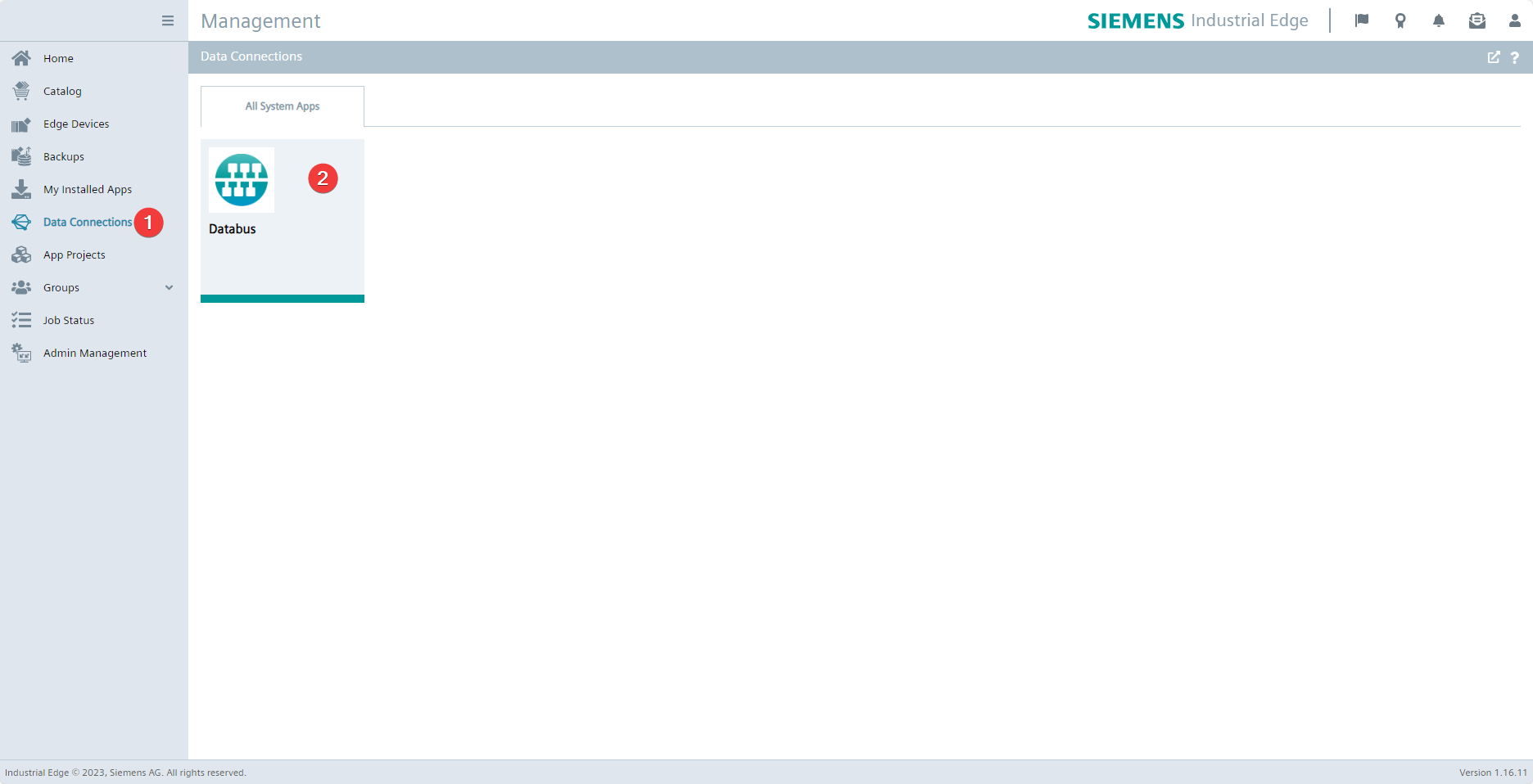 Select the Databus (2) under the Data Connections (1) menu item.
