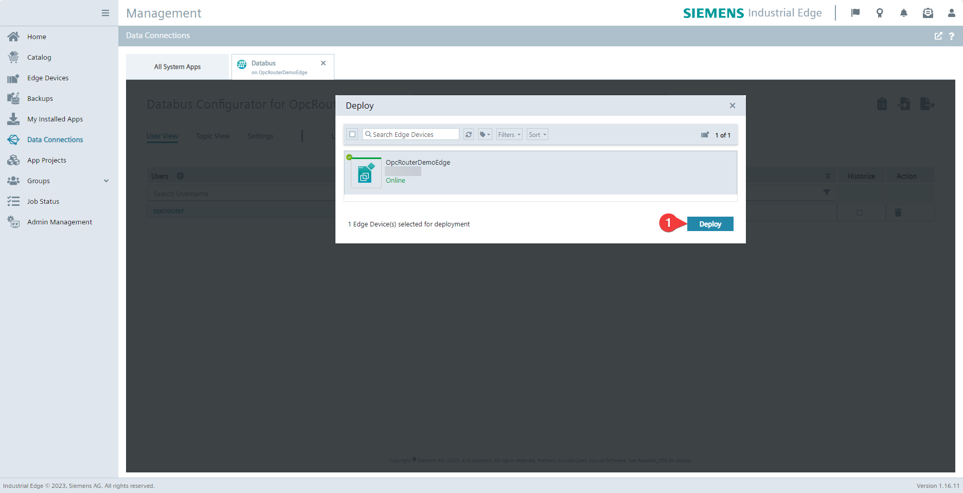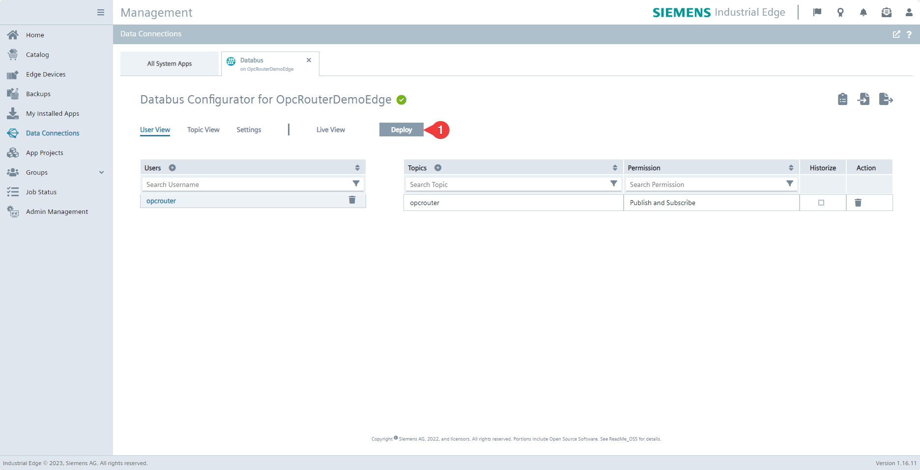 Now apply your configuration by clicking Deploy (1).