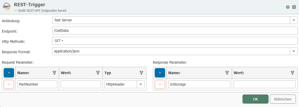 The REST trigger provides REST API endpoints. When a request is sent to the provided endpoint, a transfer is triggered. How to create a transfer object is described on the Projecting page.