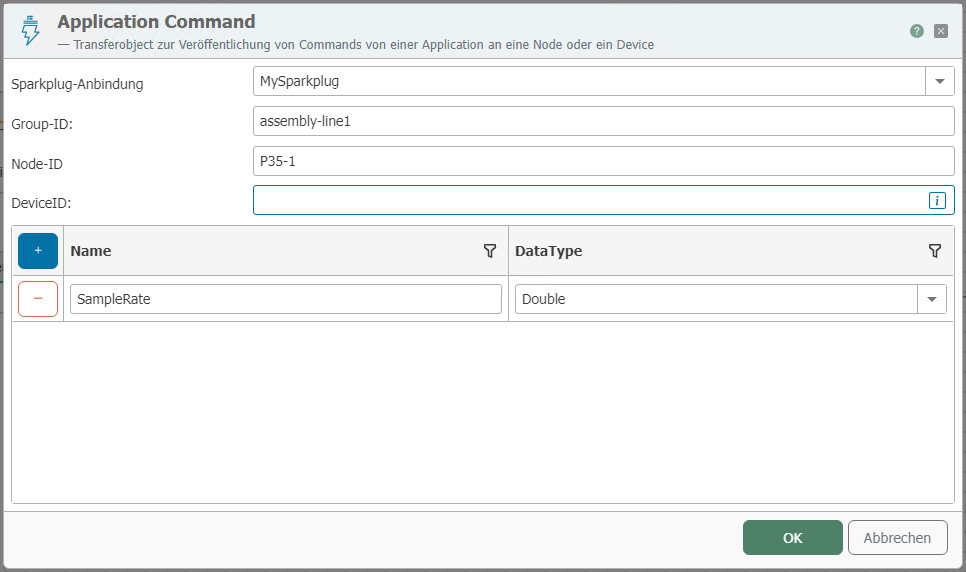 | Sparkplug connection | Select a Sparkplug connection created under Plug-ins. | |
