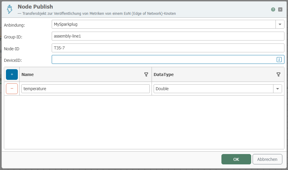 You can use the Sparkplug Node Publish transfer object to send a defined payload to various applications. The different nodes can be narrowed down and accessed using the filter options.
