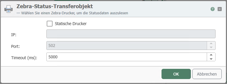 | Port (only available if "Static Printer" has been selected) | Port of the printer |