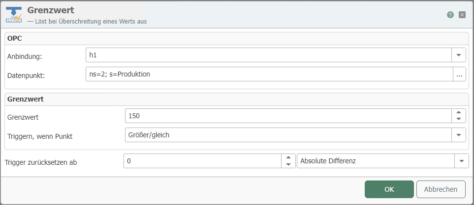Limit valueAbsolute value at which the trigger is activated if exceeded or not reached.