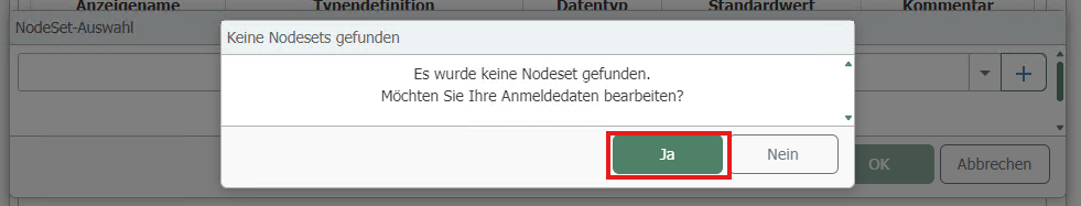 After entering your username and password and clicking "OK," the "NodeSet Selection" window will open. Select the desired NodeSet and click "OK."