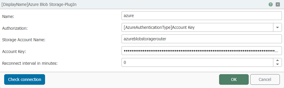 | Authorization | Select the connection type to Azure Blob Storage. Here you can find more information about the different types. |