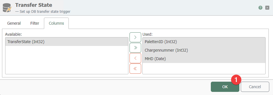 1. Select the columns you want to use and click OK to save the trigger with the settings. (1)