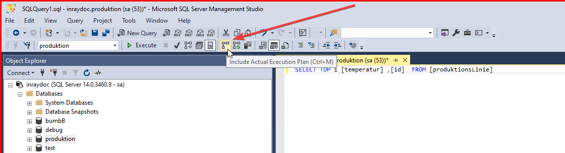 In Management Studio, click the "New Query" button, paste the copied query text into the new query tab, and activate the "Include execution plan in output" function: