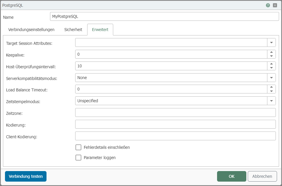 Include error detailsIf this option is enabled, PostgreSQL error details are included. These may contain sensitive data.