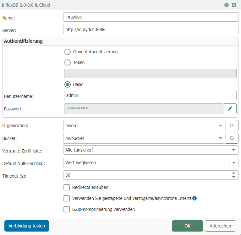 | Host | URL to InfluxDB including http(s):// and the port number. |