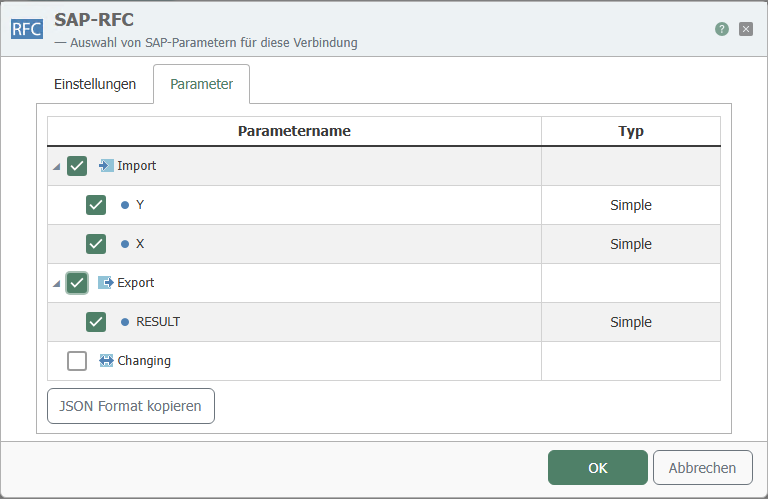 After clicking "OK," the transfer object SAP-RFC will look as follows: