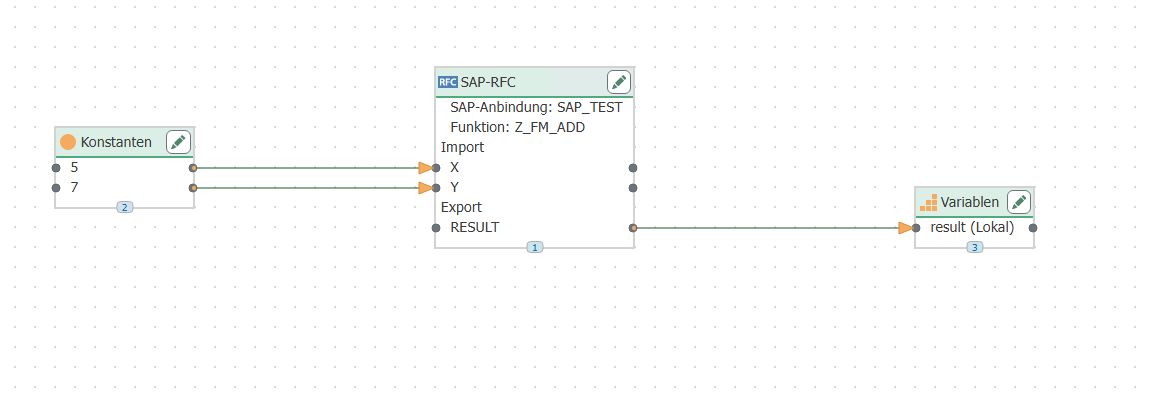 In this example, the module function Z_FM_ADD is located in the function group ZZ_TEST_OPC, and a connection named SAP_TEST has been created in the SAP plugin to access it.