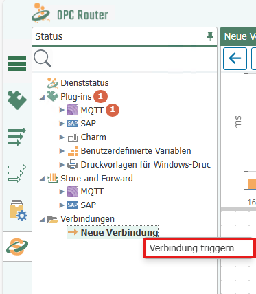Then, in the status display, trigger the connection by right-clicking on your connection and then clicking on "Trigger connection."