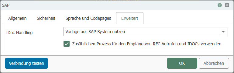 Use additional process for receiving RFC calls and IDocsIf this checkbox is selected, the OPC Router will not stop in the event of an error in the SAP trigger (RFC or IDoc) and will continue to operate.