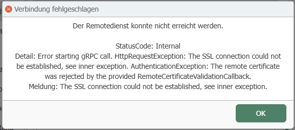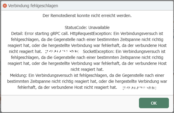 If you receive this error message during the connection test, the port (e.g., 5000) on the computer where the primary service is located has probably not been enabled.