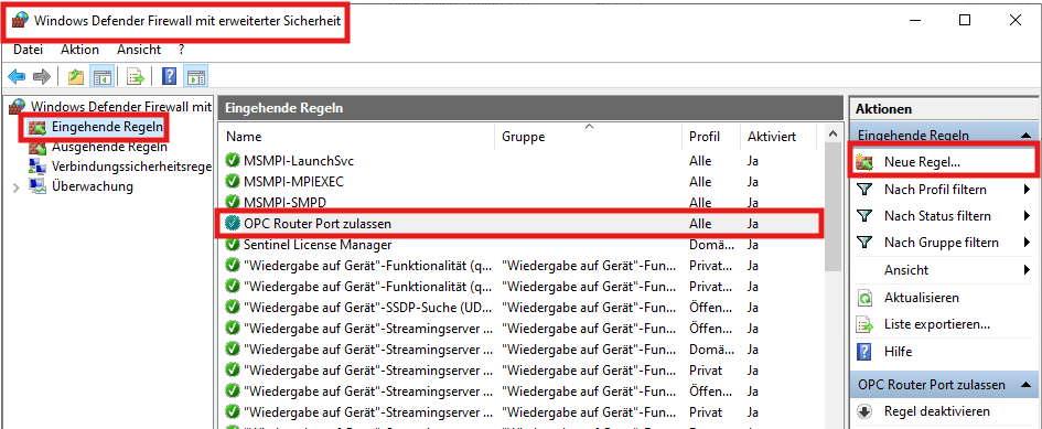 If you are using HTTPS for the primary service, the port will probably be 5001 instead of 5000, so you should make sure to open it as seen previously in "Blocking the OPC Router port in the firewall".