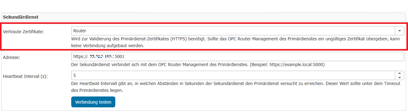 Required to validate the primary service certificate (HTTPS). If the OPC Router Management of the primary service transfers an invalid certificate, no connection can be established. (2.C)