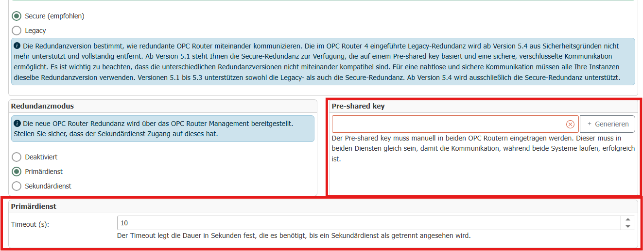 The advantage of this secure redundancy is the use of the "pre-shared key." It enables secure, encrypted communication. If you have been using legacy redundancy, you should carefully read these instructions for switching to secure redundancy.