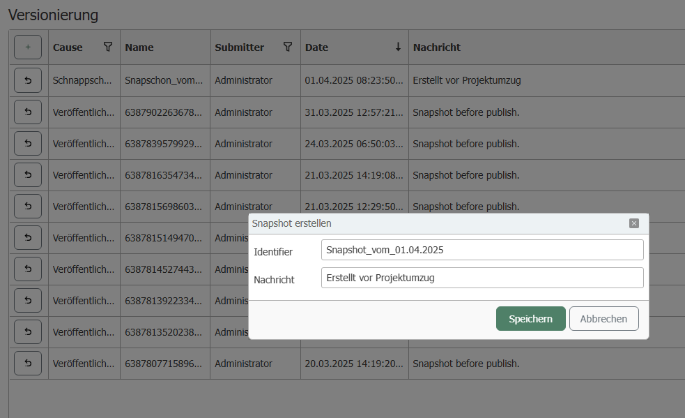 The various snapshots are now displayed in OPC Router. As soon as the project is published, a new snapshot is automatically created.