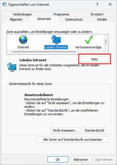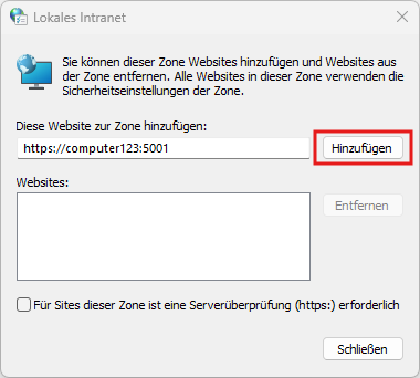 Windows login can be restricted by security settings in the group policies and via the domain. If Windows login is only permitted for websites located on the local intranet, an exception must be added for all systems that want to access the OPC router so that the system on which the OPC router is installed is trusted.