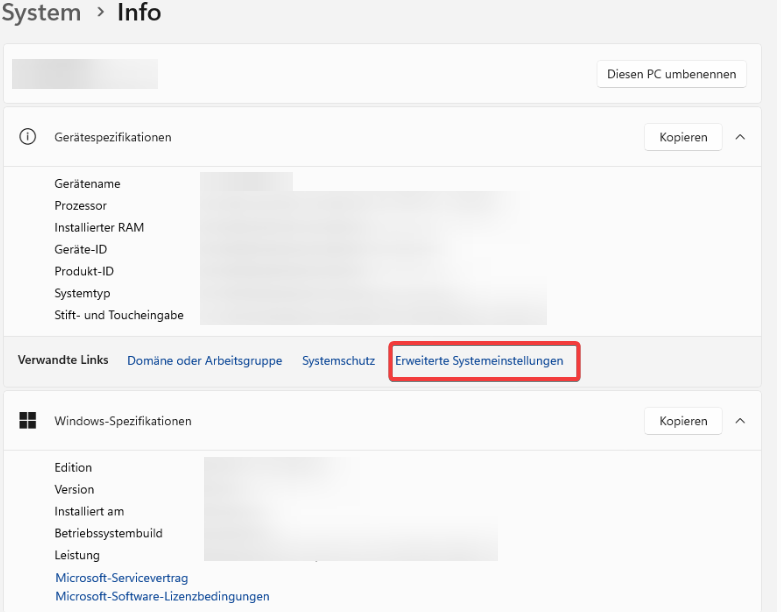 Open the information dialog for your system and click on "Advanced system settings."