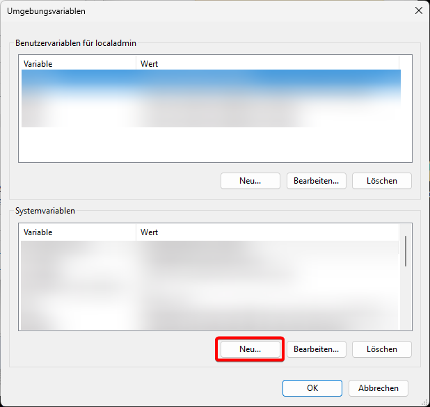 button In the environment variables dialog, click on "New..." to add another system